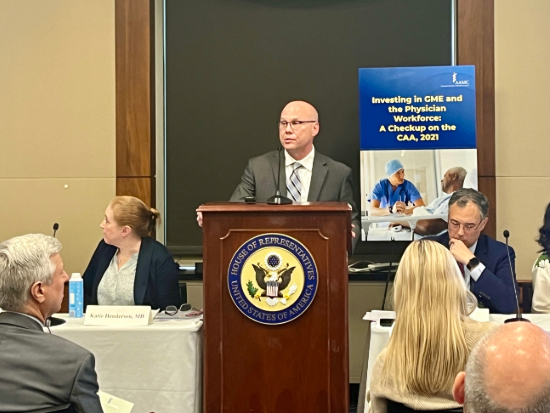 Image courtesy of @AAMCtoday.On April 9, 2024, an AAMC-sponsored briefing was held in a U.S. Congressional session to examine the impact of the Consolidated Appropriations Act, 2021 (CAA, 2021). The CAA, 2021 allowed for 1,000 Medicare-supported graduate medical education (GME) positions to be added to health systems around the United States. UAB’s Craig Hoesley, M.D., senior associate dean for Medical Education, participated as one of three panelists representing health systems and hospitals that have benefited from the legislation.
