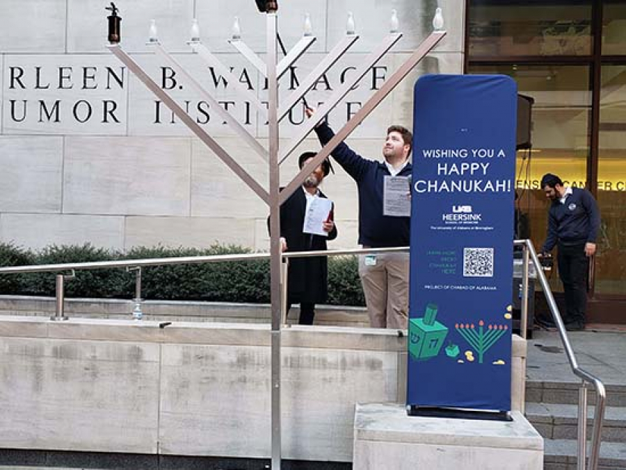 The UAB Heersink School of Medicine recently ushered in the joyous festival of Chanukah (or Hanukkah) with a vibrant Public Menorah Lighting event held on Thursday, Dec. 7. Hosted by the Office for Diversity and Inclusion Student Affairs, the Chabad of Alabama, and the Jewish Medical Student Association, this festive event brought together UAB leadership, students, and community members. The gathering was filled with meaningful speeches, networking opportunities, music, and traditional Chanukah treats.