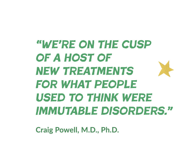 “There have been dramatic advances in the clinical treatment of genetic causes of all sorts of intellectual and developmental disabilities,” Powell said. “We have treatments that can slow the course of Alzheimer’s. We’re using brain stimulation to treat Parkinson’s. We can now virtually cure a genetic form of childhood ALS called spinal muscular atrophy with a one-time dose of gene therapy into the spinal fluid.