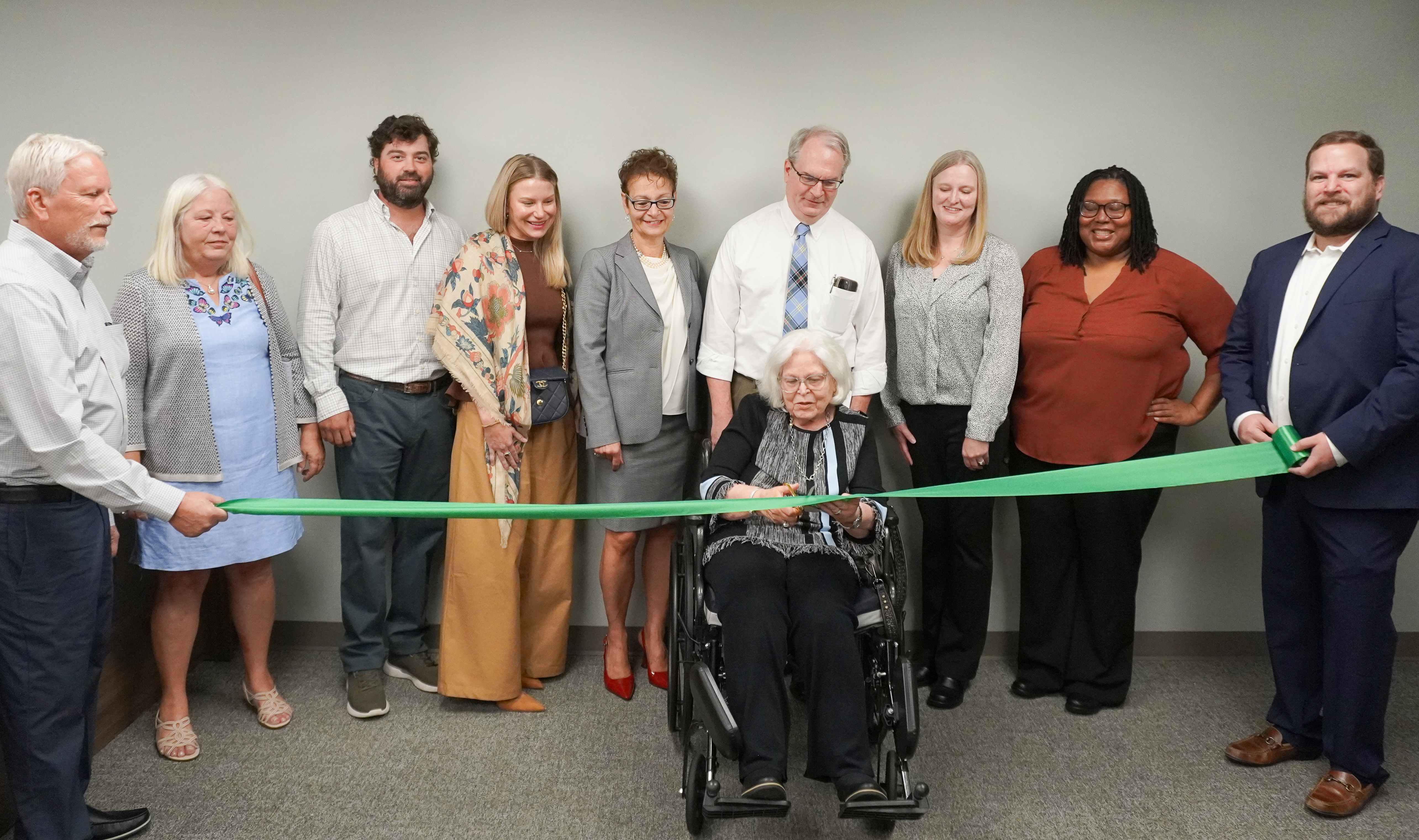 Jean Adams, wife to the late Dr. Robert Adams, was present at the ceremony to cut the ribbon after remarks were delivered by Water Bell, M.D., Director, CPPP, Dr. Carrie Reid, and Cristina Magi-Galluzzi, M.D., Ph.D., Robert and Ruth Anderson Endowed Chair. Nearly 30 attendees were present from UAB, Baptist Health, the Adams family and the board of the Robert B. Adams Foundation.