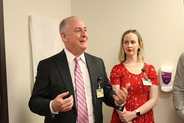John Dantzler, Ph.D., director of the Substance Abuse Division in the UAB Department of Psychiatry and Behavioral Neurobiology, and Lauren Griffin, LPC, NCC, Clinical Director at Beacon Recovery, speak at the Dedication of the Michael Wise Memorial on April 30.“I’ve never forgotten the first time I saw him,” Griffin recalled. “I was walking out of the front office in our old building at the same time as he was walking in from the parking lot. He took off his sunglasses and smiled at me, and I knew instantly that there was something special about him.”