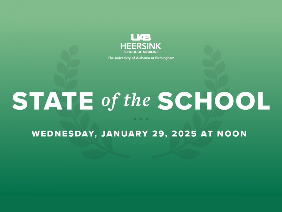 On Wednesday, Jan. 29, Anupam Agarwal, M.D., senior vice president for Medicine and dean of the Heersink School of Medicine, presented the annual State of the School address in person at Margaret Cameron Spain Auditorium and via live stream (watch a replay).
