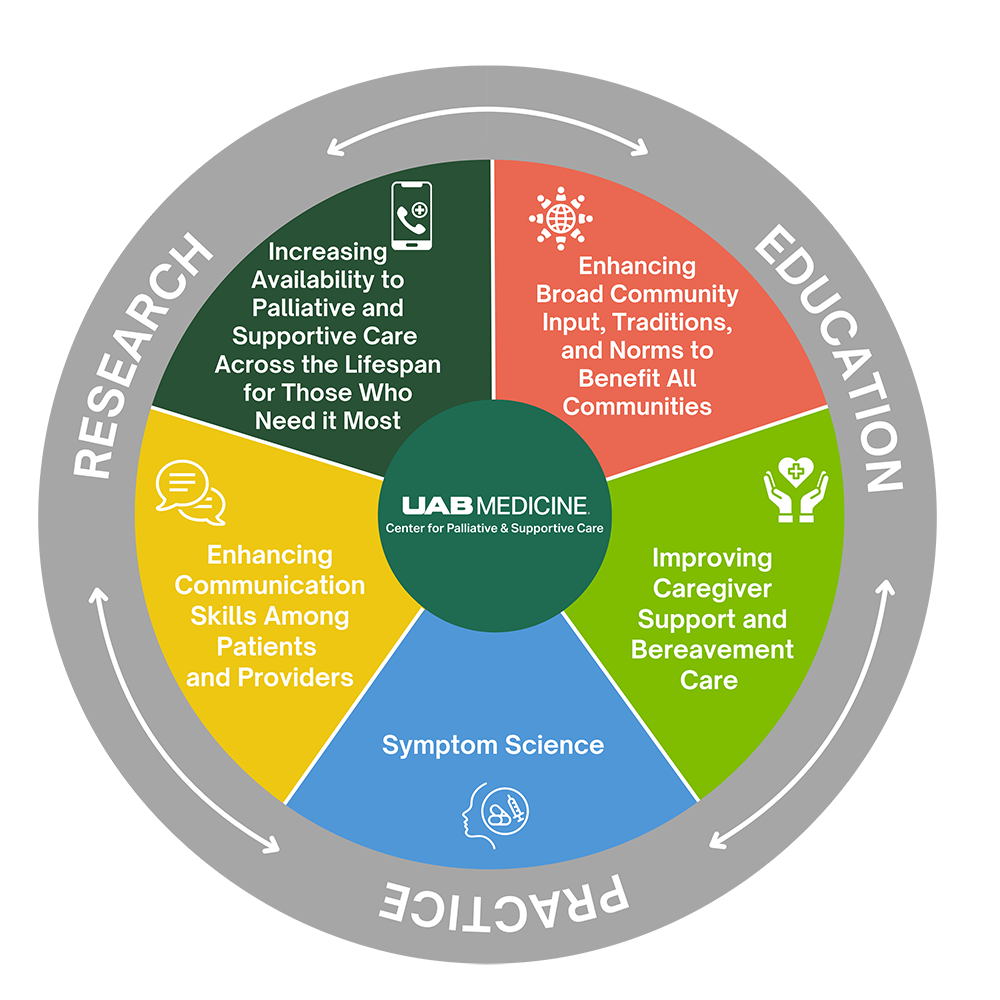 A core mission of the UAB Center for Palliative and Supportive Care, one of the University-Wide Interdisciplinary Research Centers (UWIRC), is the advancement of knowledge. Since the early 2000’s, with UAB and Robert Wood Johnson Foundation (Alabamians for Better Care at Life’s End) funding, the Center has sought to discover and advance palliative care knowledge.