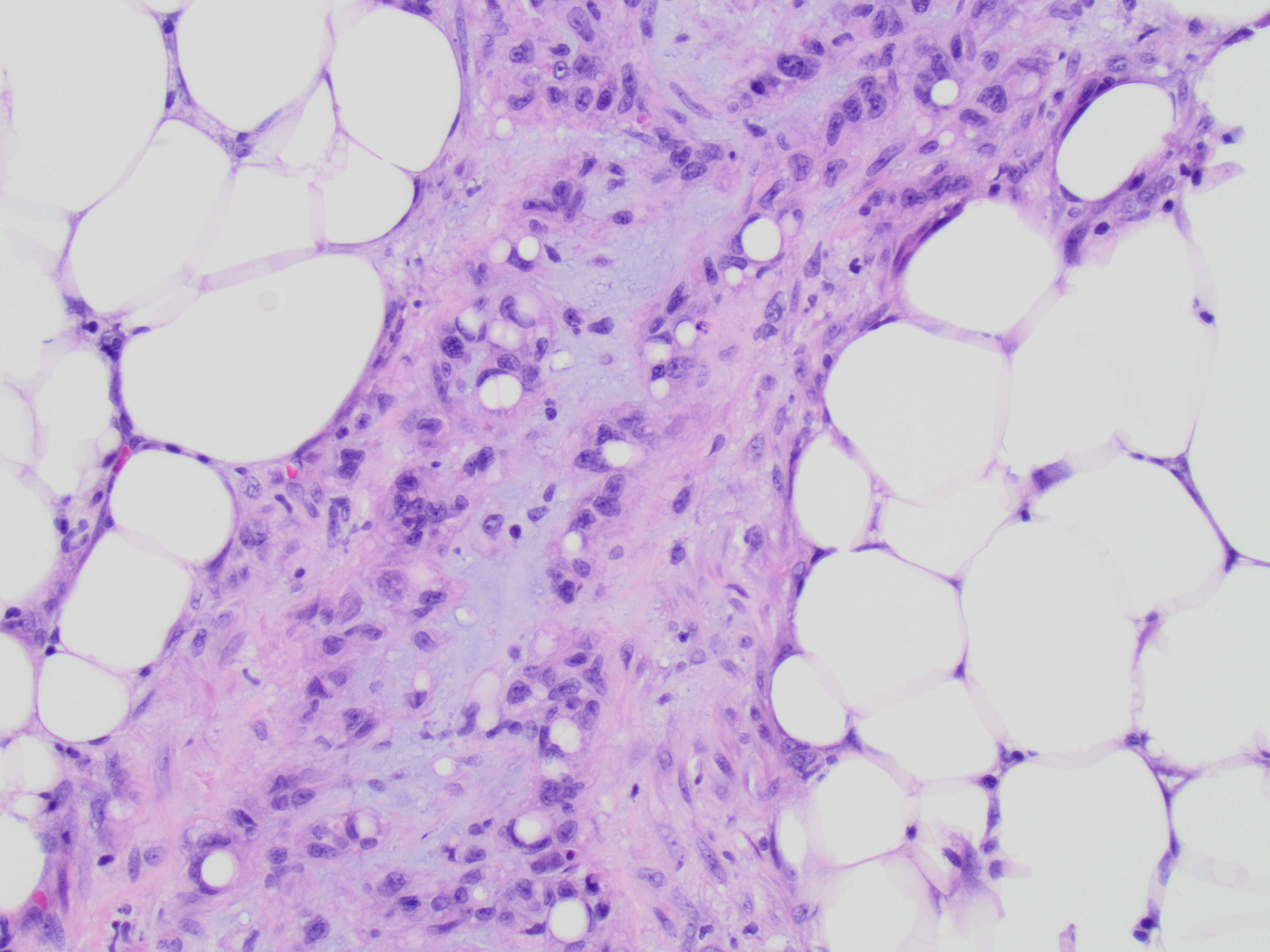 81-year-old female with a remote history of follicular lymphoma was undergoing evaluation for possible disease recurrence when an incidental right breast mass was identified.