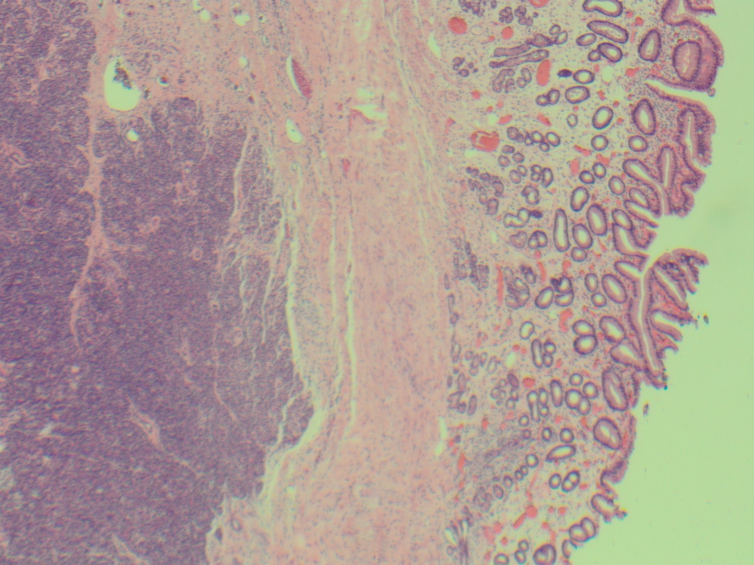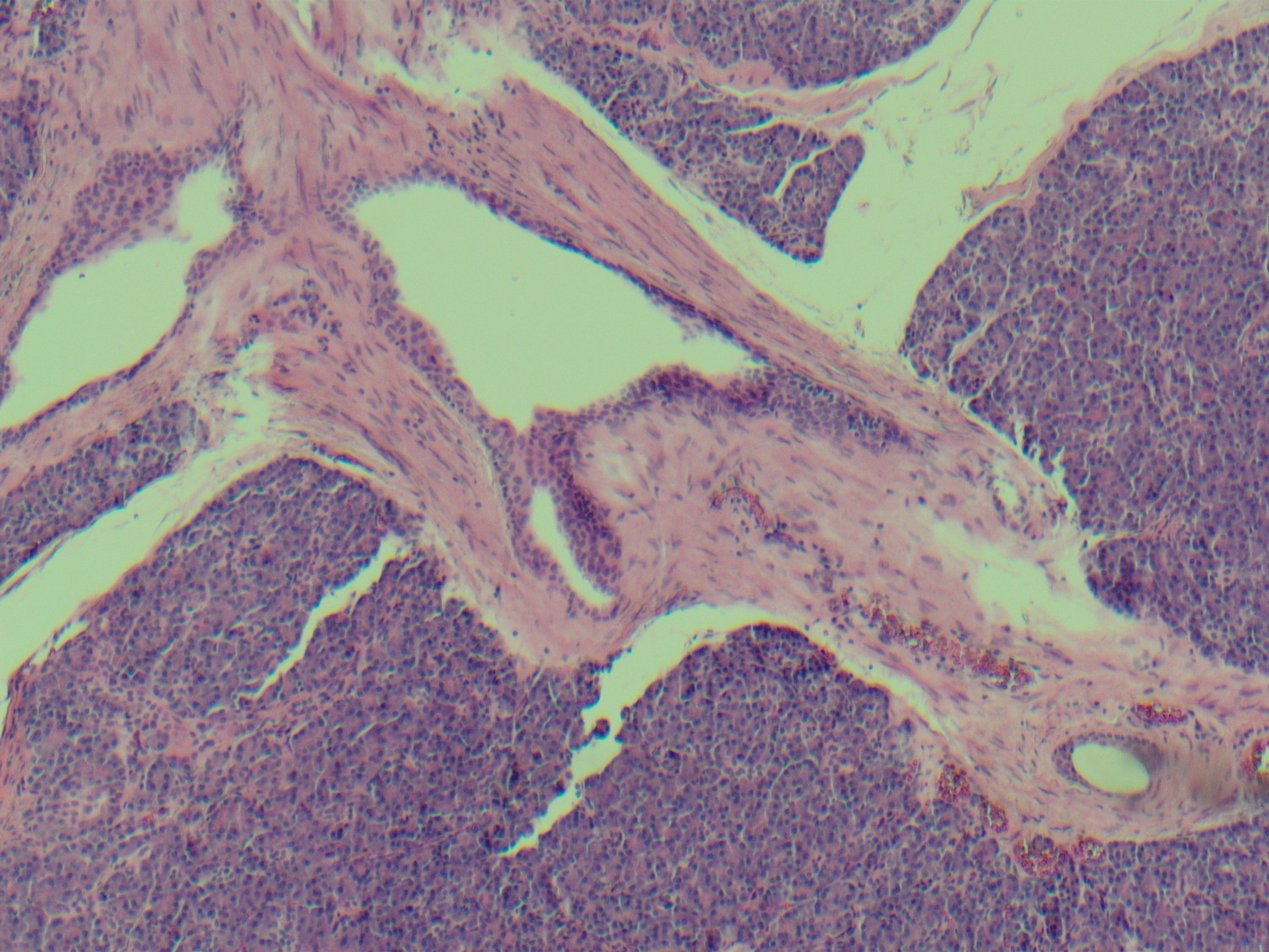 The lesion was resected, showing a submucosal rest of histologically normal pancreatic parenchyma (Fig 5-7).