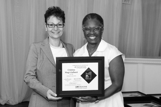 Magi-Galluzzi with Andrea McCaskey, Momentum, at her graduation from the Momentum in Medicine UAB Leadership Program in 2023Among her greatest achievements, she says, is serving as the editor of four textbooks on genitourinary pathology. Another career highlight is the recognition by the UAB Pathology residents in 2023 as the recipient of the Leonard H. Robinson Award for Resident Education in Anatomic Pathology.