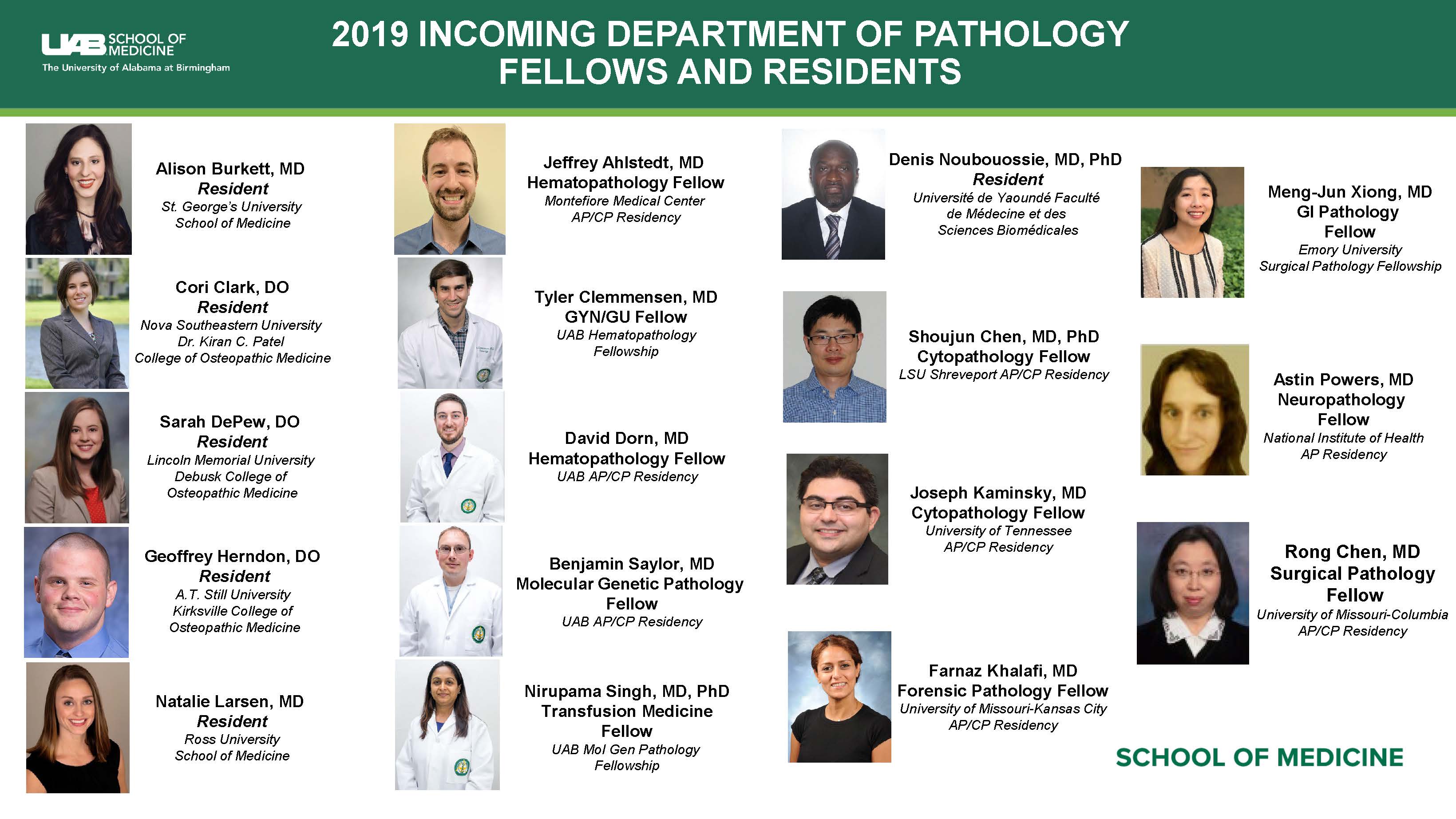 Welcome to all UAB Pathology's incoming residents and fellows! They join the 189 total fellows and residents total in the UAB Graduate Medical Education program.