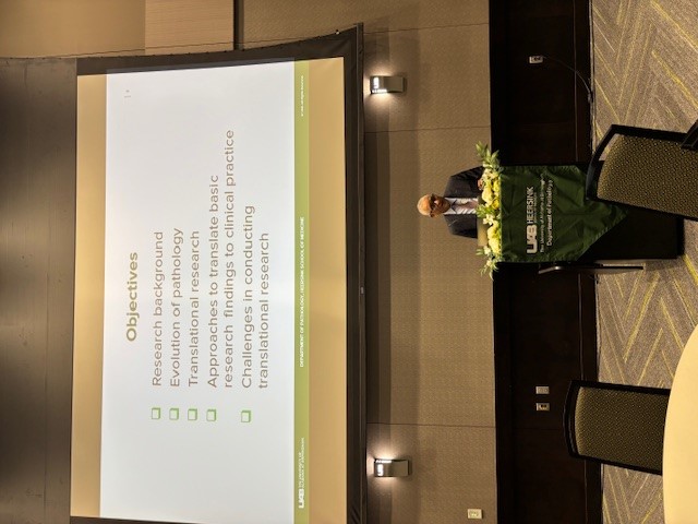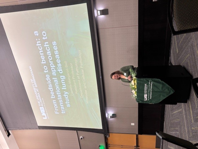Faculty from each division presented translational research-focused talks. Camilla Bell, M.Sc., Ph.D., an assistant professor in the Division of Molecular and Cellular Pathology, presented the talk, titled, "From bedside to bench: a translational approach to study chronic lung diseases." Shu Chen, Ph.D., Ona Faye-Petersen Endowed Professor, Division of Neuropathology, delivered the