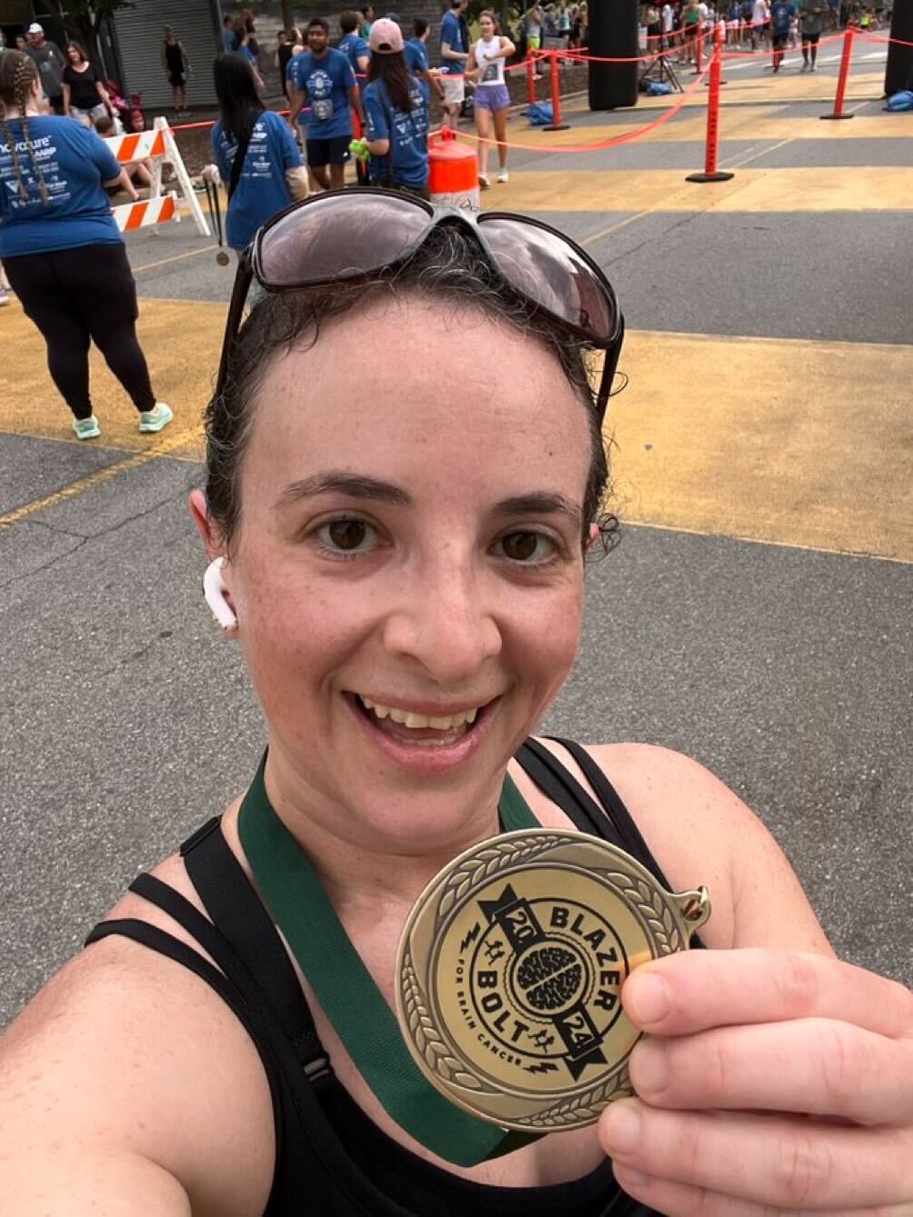 Dr. Frida Rosenblum after completing the Blazer Bolt 5K department include Frida Rosenblum, M.D., Associate Professor, Division of Anatomic Pathology, C. Ryan Miller, M.D., Ph.D., Vishnu B. Reddy Translational Research Endowed Professor and Division Director of the Division of Neuropathology and Neda Wick, M.D., Assistant Professor, Neuropathology.