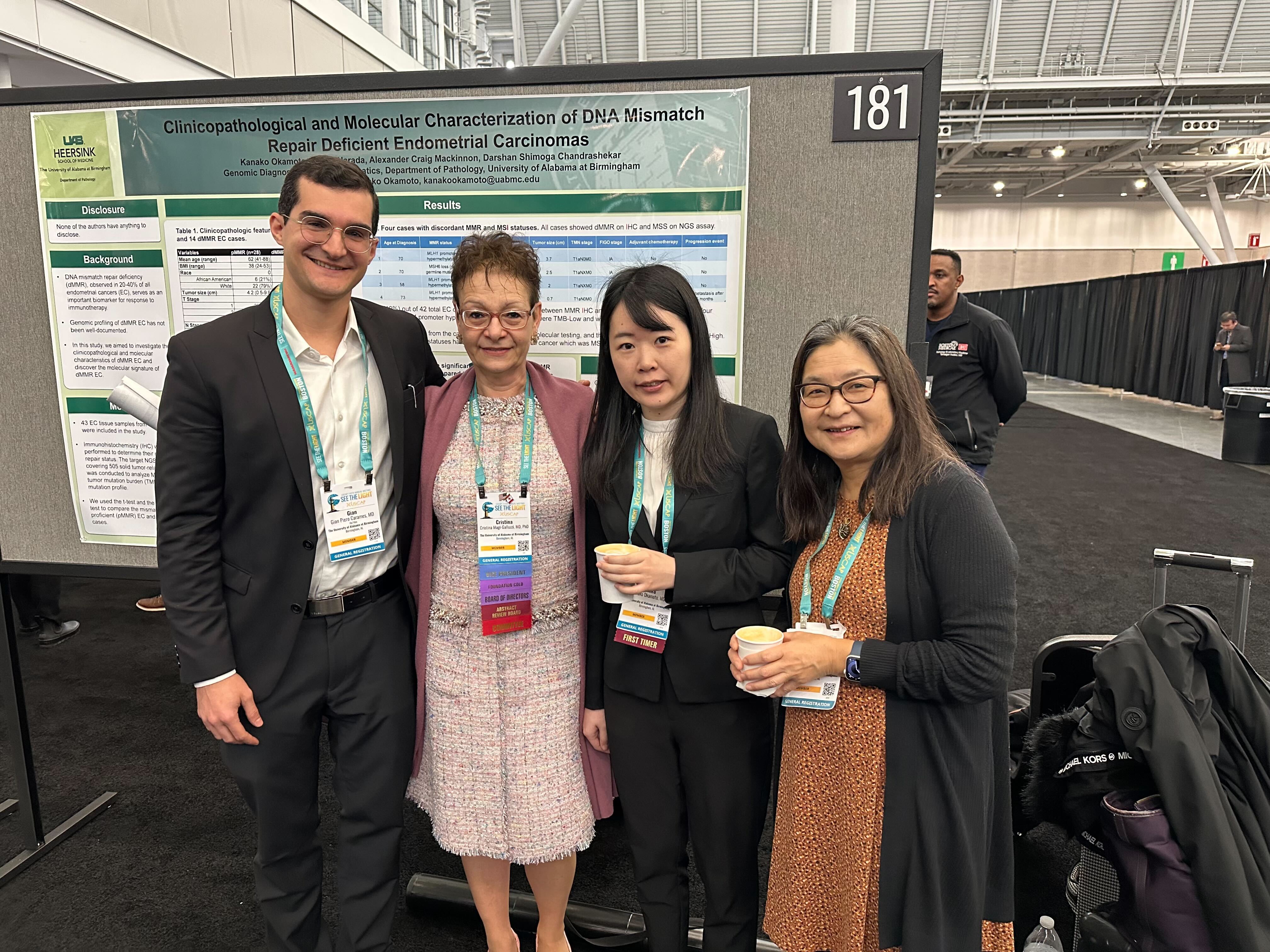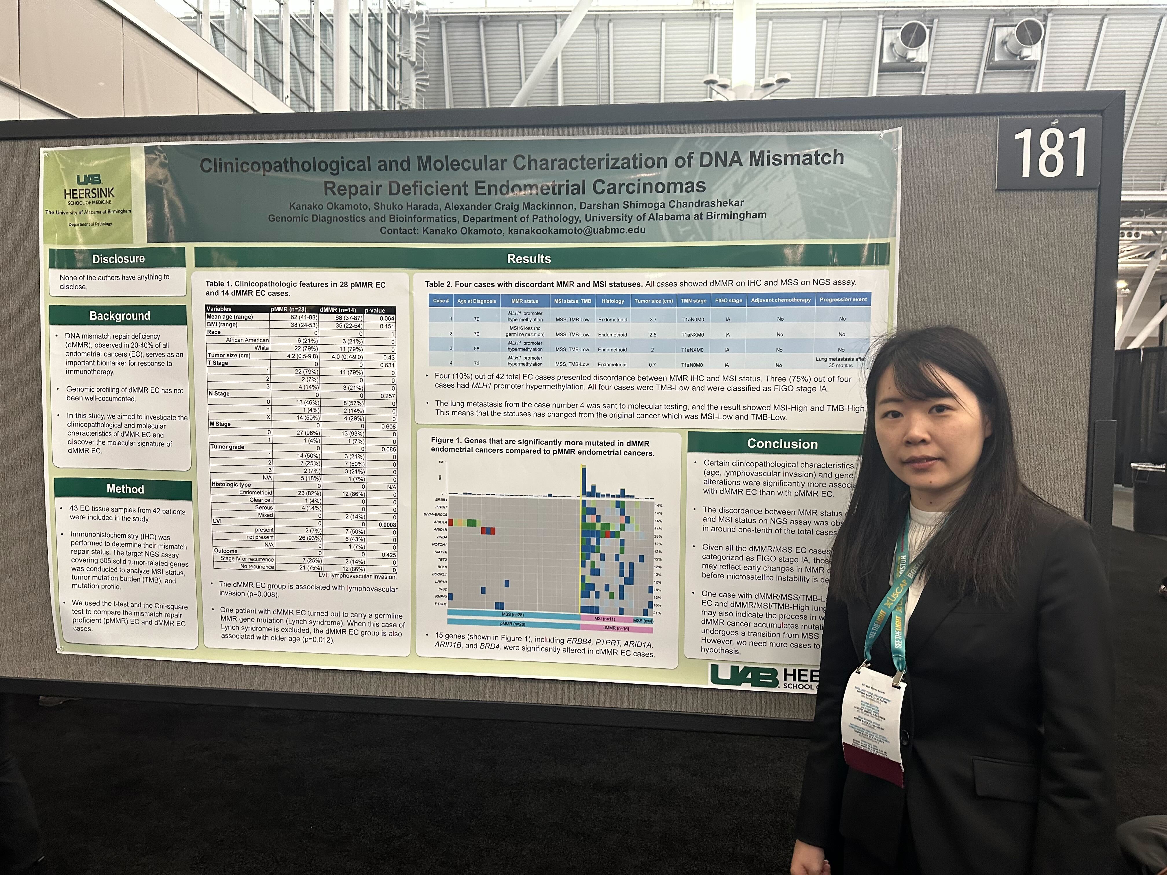 Kanako Okamoto, Alexander C. Mackinnon, M.D., Ph.D., Darshan S. Chandrashekar, Ph.D., and Dr. Shuko Harada, presented the poster, “Clinicopathological and Molecular Characterization of DNA Mismatch Repair Deficient Endometrial Carcinomas.”