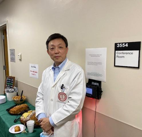 Dr. Shi Wei outside the Surgical Pathology conference roome Program throughout most of his career at UAB. From 2013 to 2017, he also served as co-director of the UAB Pathology Core Research Laboratory.