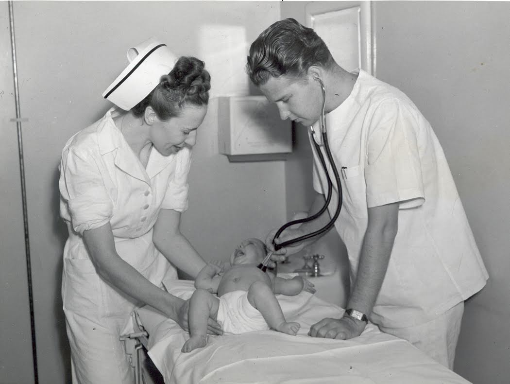 The Department of Pediatrics was established in 1945, along with all of the clinical departments in the School of Medicine. The initial budget of the department was $4,000, including $2,900 dedicated to faculty salaries and $965 for equipment. For purpose of comparison, the Department of Surgery’s budget was $12,000, and the budget for the Department of Obstetrics was $11,000.