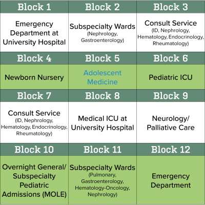 Education is a top priority for our Med-Peds residents and faculty. The Internal Medicine and Pediatrics Categorical programs each offer daily morning report, noon conferences as well as weekly department-sponsored grand rounds. As a Med-Peds resident, you have flexibility to attend conferences specific to personal career interests on medicine, pediatrics, or hosted by subspecialties.