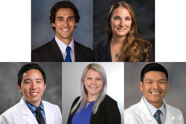 Top L to R: James Dunville, Chloe Meyer Braun, Andrew Donahue, Natalie Soyster and David TaylorThe winners of the Resident Educator Award are recognized for their time and dedication to educating medical students during their Pediatric rotations. The award is voted on by each medical student throughout the year at the conclusion of their pediatric rotation.