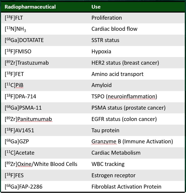 Radioisotopes (beyond 18F, 11C, 13N, 15O, 68Ga)