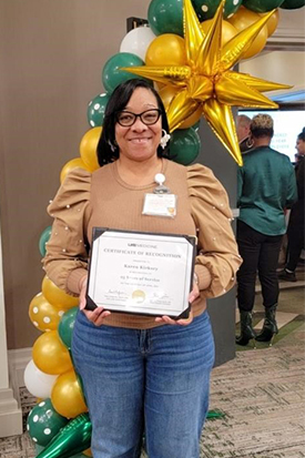 A UAB Medicine Service Awards luncheon was held April 3 honoring employees who reached a service milestone of 20 or more years in 2023. Pictured is Karen Kirksey, Radiation Therapist, who celebrated 25 years.