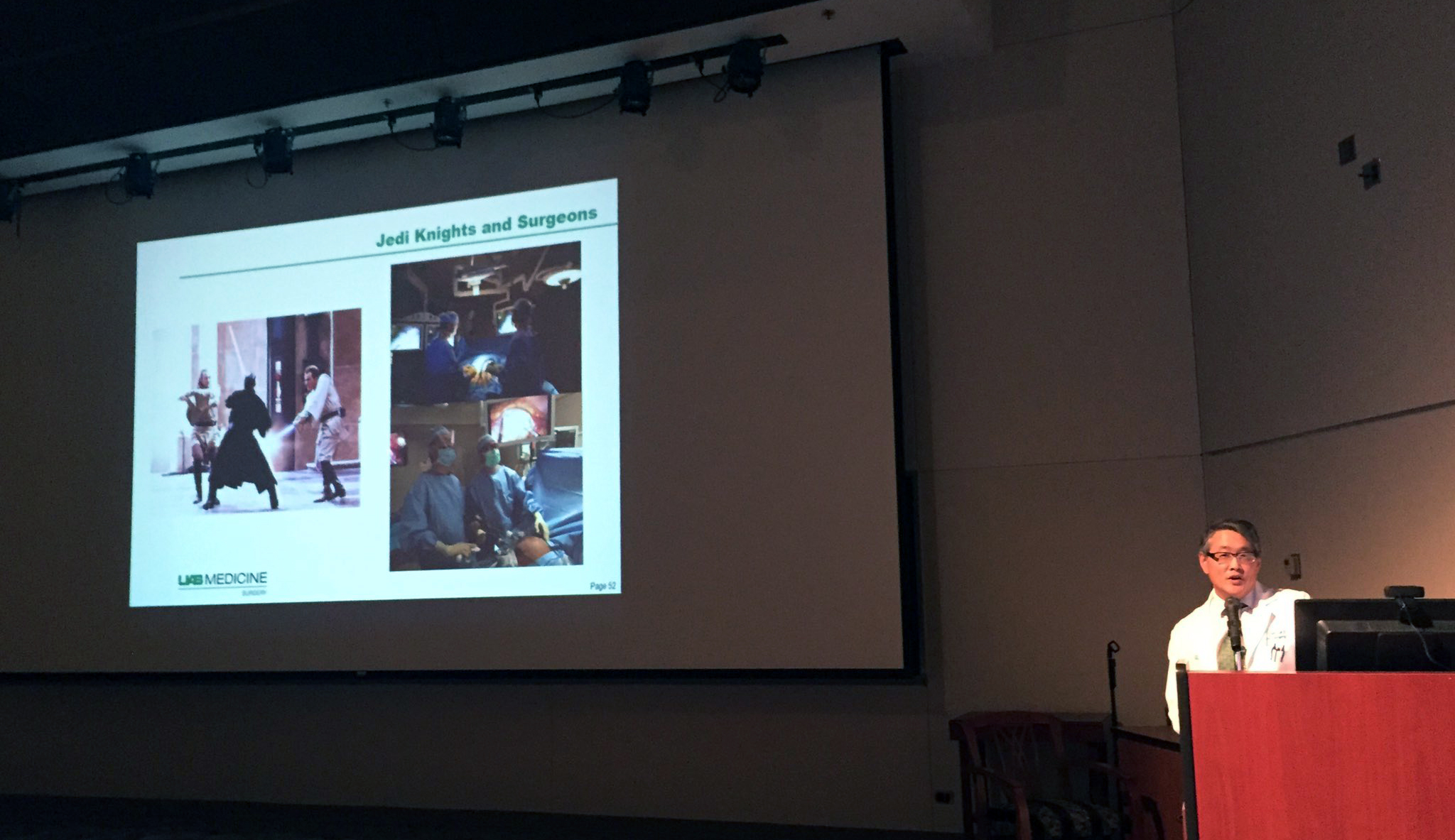 Department Chair Herbert Chen, M.D., delivered his annual State of the UAB Department of Surgery address in Margaret Cameron Spain Auditorium last Tuesday, declaring at one point, "There are a lot of comparisons you can make between Jedi knights and surgeons, I believe."