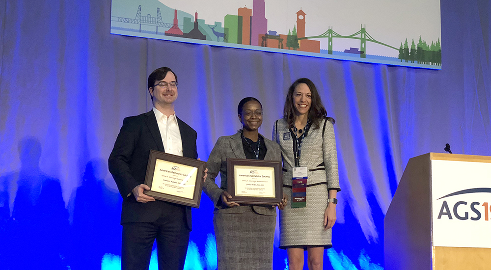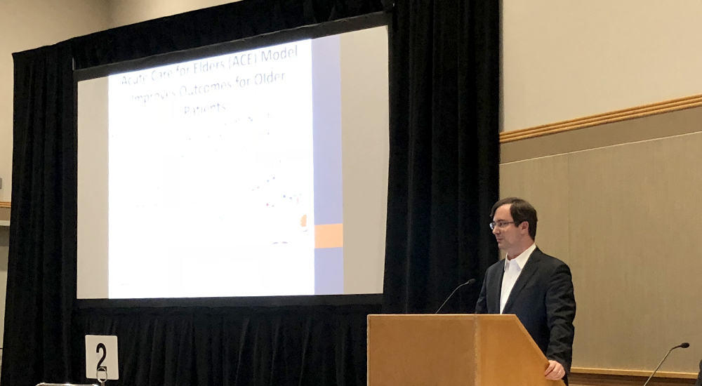 Former assistant professor in the Division of Gastrointestinal Surgery Courtney Balentine, M.D., MPH, recently presented his research on Virtual Acute Care for Elders at the American Geriatrics Society’s 2019 meeting, where he was also named one of the recipients of this year’s AGS Jeffrey H. Silverstein Memorial Award for Emerging Investigators in the Surgical and Related Medical Specialties.