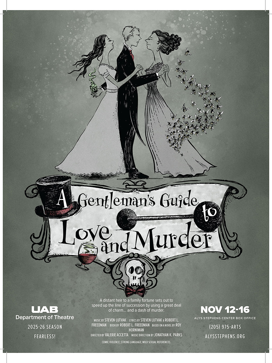 Theatre UAB will present the 2014 Tony Award winner for Best Musical, “A Gentleman’s Guide to Love and Murder,” with five performances from Nov. 12-16 at the University of Alabama at Birmingham.