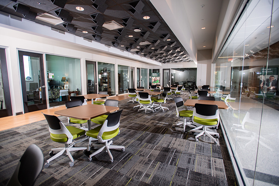 To provide a holistic educational experience to future engineers, the facility consists of advanced labs, research suites, common areas and the Student Success Suite, composed of three major components: the Peer Tutoring Lab, First-Year Advising and Engineering Career Services.