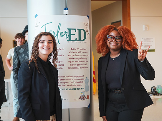 Hannah Reister and Makiah Forge“Tailor Ed,” a college experience improvement tool by Makiah Forge, a finance major, and Hannah Reister, an industrial distribution major, won third place and $1,000. The student-oriented app prevents wasting time and money on unnecessary classes by evaluating personalities and preferences to advise students on the best courses and programs for them.