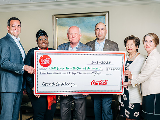 Birmingham’s Coca-Cola Bottling Company UNITED, Inc., gave $250,000 to the University of Alabama at Birmingham’s Live HealthSmart Alabama initiative this month, a gift that will be used to create Community Leadership Academies in the communities of Bush Hills, East Lake, Kingston, Titusville, Central City, Druid Hills, Evergreen, Fountain Heights and Norwood.