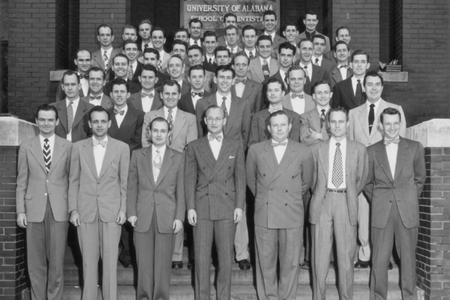 The first graduating class of the School of Dentistry, all U.S. veterans, in 1952. (Photo provided by UAB Archives)