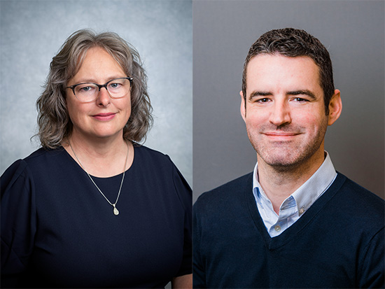 Headshots of Karen Crospey and Jeremy Day on neutral backgrounds. Karen Cropsey, Psy.D., and Jeremy Day. Ph.D.