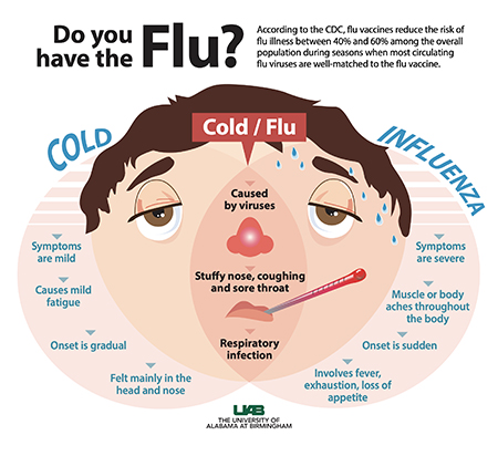 Vaccines can reduce the risk of illness between 40 to 60 percent. For more information about flu prevention, visit uab.edu/flu. |