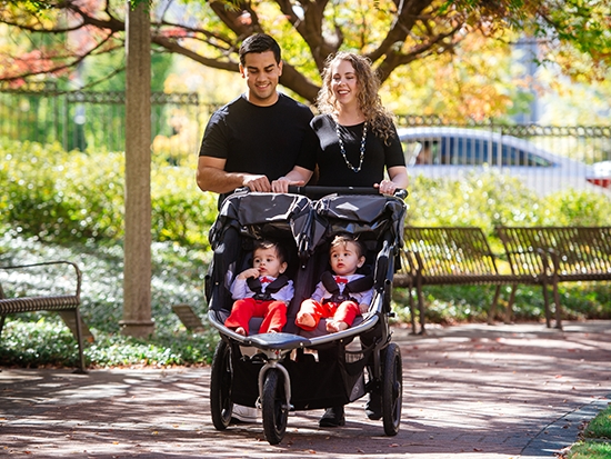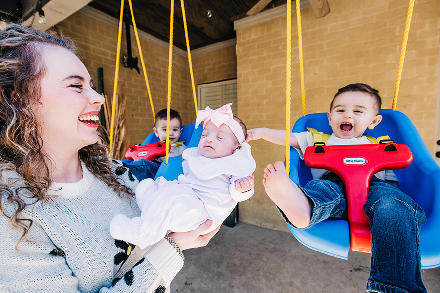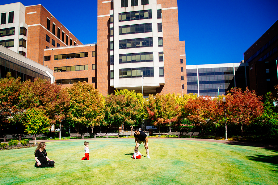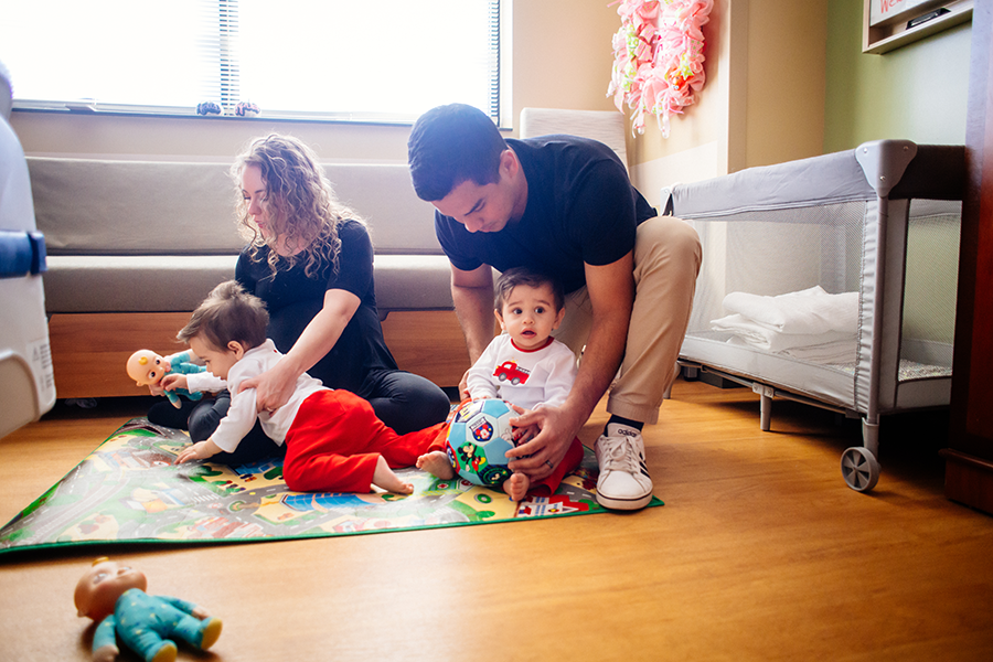 Britney and Frankie Alba play with their sons, Luka and Levi, in front of the UAB Women and Infants Center.