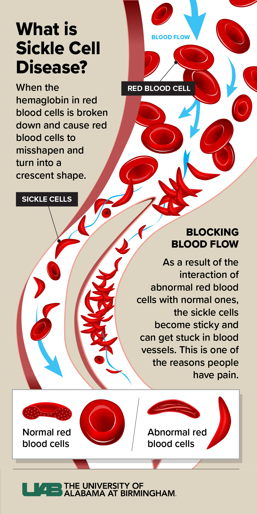“Normally, red blood cells flow through like water through pipes. When the cells get dehydrated or lose their oxygen, they can get stuck in a person’s ‘tiny pipes,’” said Kanter, who is also a professor in the UAB Division of Hematology and Oncology. “This blockage keeps the red blood cells from getting to their destination and is a main reason people have pain or organ damage with SCD.”