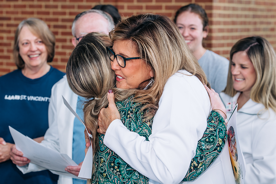 Lisa Costa hugs Taylor England Calvert at UAB St. Vincent’s.
