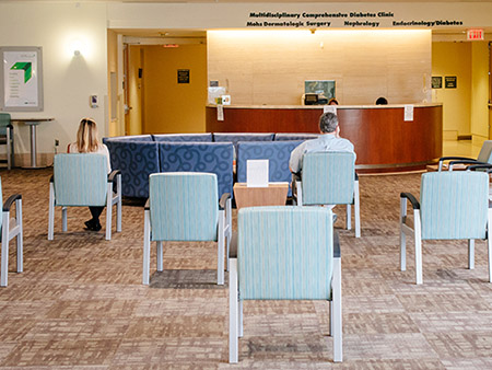 Once in a clinic waiting space, patients can expect chairs to be separated from one another in an effort to practice social distancing. Hand sanitizer also is available nearby. In all inpatient and outpatient settings at UAB, enhanced attention to detail and cleaning processes have been implemented by UAB’s Environmental Services teams, ensuring that all surfaces, waiting areas and exam rooms are cleaned and sanitized to a standard approved by UAB’s Infection Prevention teams.