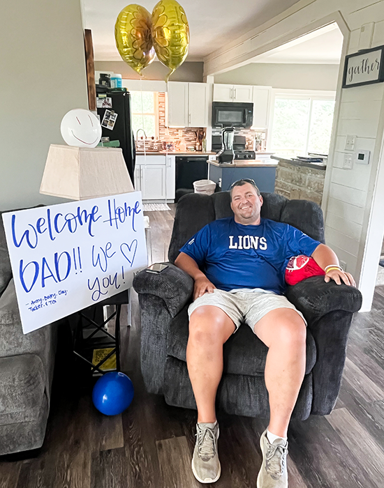 Dan Boatman returns home after open heart surgery.