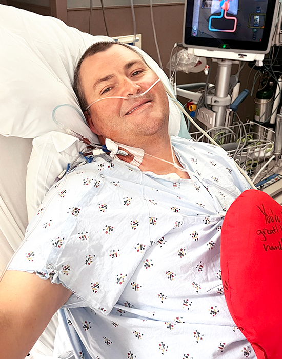 “Dan had a severe blockage at a branch point into the arteries that take blood to the anterior surface of the heart,” Witcher said. “Given that Dan was only 43 years old, we felt the most durable option for long-term success would be to bypass those two arteries.”
