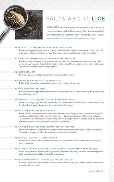 There are many fallacies about lice, says D’Ann Somerall, DNP, an assistant professor and family nurse practitioner specialty track coordinator in the University of Alabama at Birmingham School of Nursing. The biggest misconception, Somerall says, is that lice are a problem only for the poor.
