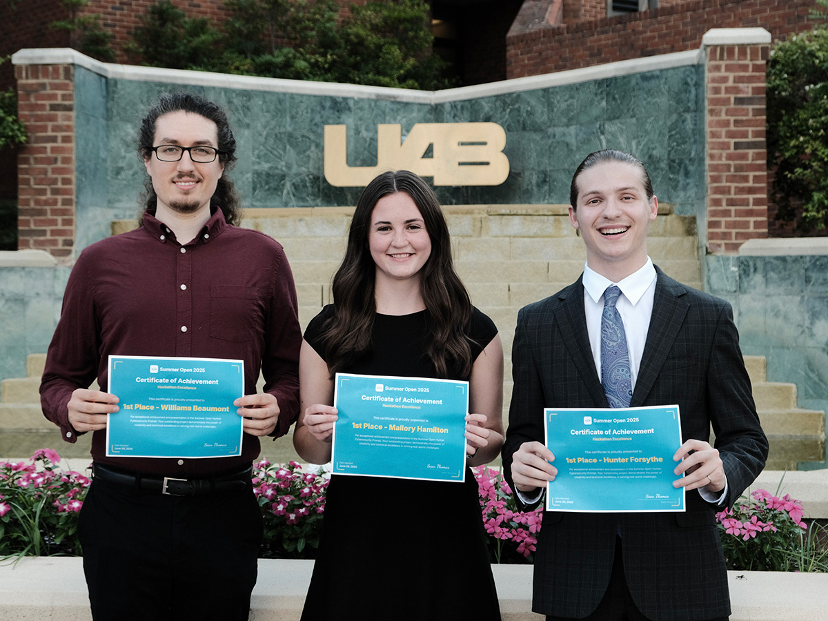 The team was composed of UAB students Hunter Forsythe of Hoover and Williams Beaumont of Homewood and University of Alabama student Mallory Hamilton. Forsythe and Beaumont are both students in UAB’s nationally top-ranked Master of Science in Cybersecurity program and members of the CyberCorps Scholarship for Service program, funded by the National Science Foundation. Hamilton is an undergraduate cybersecurity student at the University of Alabama.