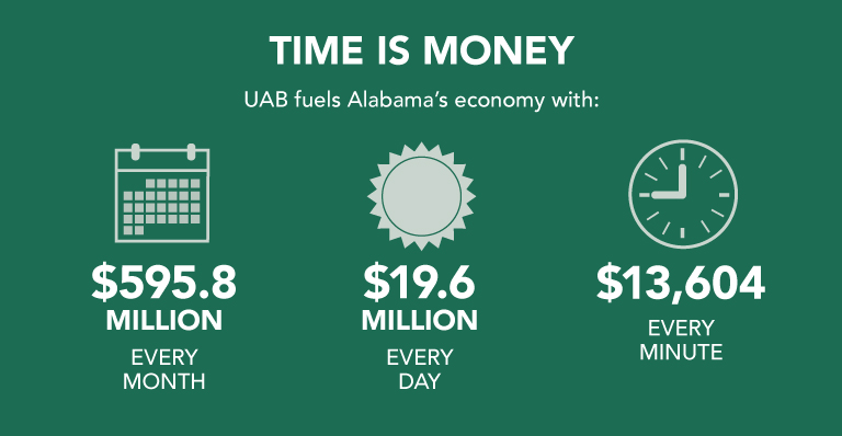 “To put this economic impact number in perspective, $7.15 billion represents almost $20 million every day UAB pumps into our state economy,” Watts said. “The fact is, our economic impact is only one way our students, faculty and staff make a positive difference every day. We are making equally impressive gains in our education, research, health care and community service missions, through which we continue to change lives across Alabama and beyond.”