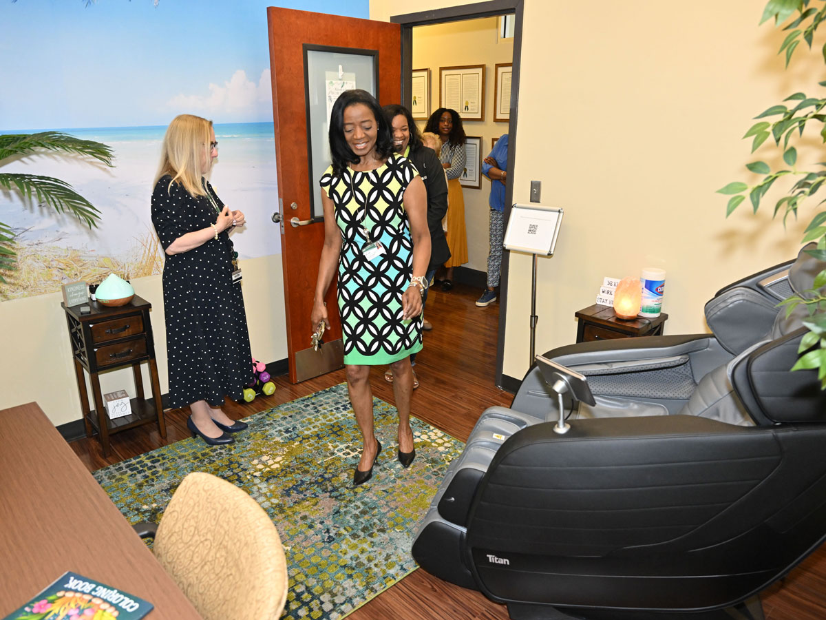 In its first year, WE CARE provided nursing professional development specialists trained in resilience and psychological first aid, and a nurse wellness manager to provide individualized support services exclusively to nurses at UAB Medicine. During the second year of the grant, efforts were turned toward the School, creating a Wellness Room, bringing on a psychiatric-mental health nurse practitioner and a social worker for students, faculty and staff to provide support and help them learn to manage stress and respond compassionately to others in distress. Wellness modules also were created for students that focused on diet, exercise, sleep, mental health, stress and resilience. Now in its third year, the program’s focus has been on interventions throughout the state, particularly working with hospitals in rural areas.