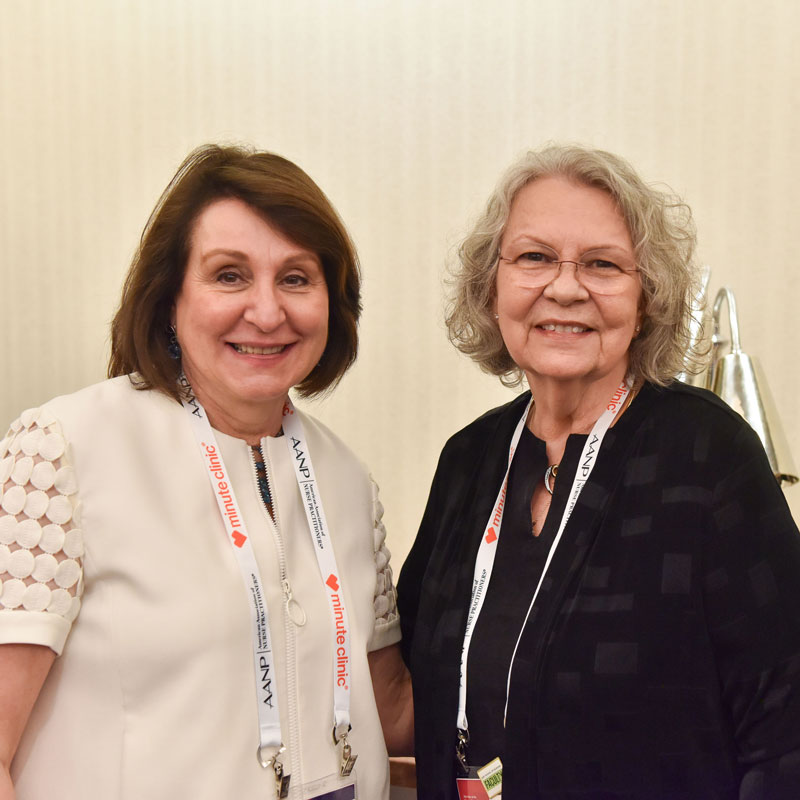 Retired Professor Patricia Speck, DNSC, CRNP, FNP-BC, AFN-C, DF-IAFN, DF-AFN, FAAFS, FAAN, and PhD student Maria Lanzi, ANP-BC, MPH, COHN-S, were inducted as AANP Fellows, recognizing their contributions to education, policy, clinical practice and research.