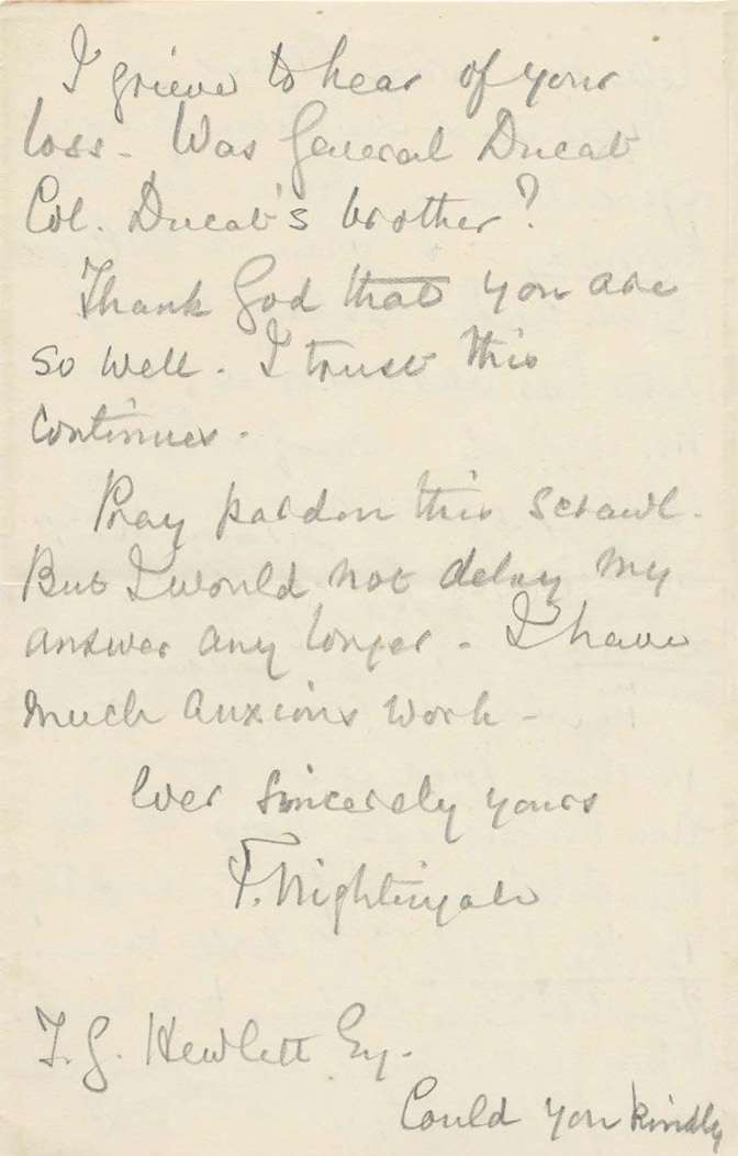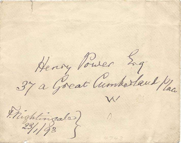 Henry Power Esq - 37a Great Cumberland Place W. - F. Nightingale - 23/1/93