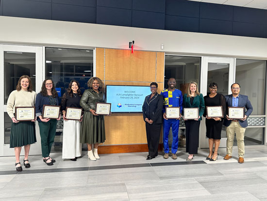 Several University of Alabama at Birmingham School of Nursing faculty members received recognition from the Alabama League for Nursing with its Excellence in Teaching Award, presented at the 2024 Lamplighter Banquet. The award recognizes exemplary educators for the development and implementation of innovative teaching strategies employed in a variety of settings.