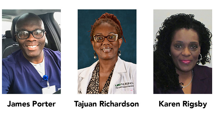 Three University of Alabama at Birmingham (UAB) School of Nursing Master of Science in Nursing (MSN) students in the Psychiatric/Mental Health Nurse Practitioner Specialty Track have earned scholarships from the U.S. Department of Veterans Affairs and U.S. Department of Health and Human Services.Tajuan Richardson, RN, CRT, has been awarded a 2017-2018 Veterans Affairs Health Professional Scholarship from the U.S. Department of Veterans Affairs, which is designed to provide veterans with specialized care by increasing the supply of qualified health care professionals.Richardson is a scholar in the Veterans Affairs Nursing Academic Partnership in Graduate Education (VANAP-GE) program, a joint effort of the UAB School of Nursing and the Birmingham VA Medical Center offering psychiatric nurse practitioner students focused didactic and clinical experience in the psychiatric care of veterans.
