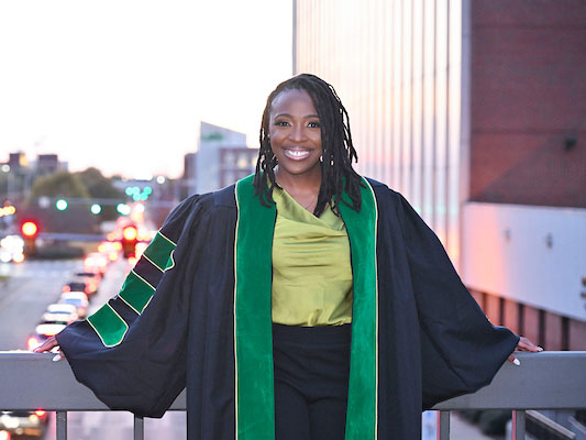 After graduation in December, McCarroll will begin a career as a doctorally prepared nurse practitioner and hopes to find a position in a community clinic. Her dream is to open community wellness centers in urban and rural under-resourced communities and to offer comprehensive medical care and workout facilities for free or at a reduced cost. She believes that income shouldn’t determine whether someone is healthy. She wants to help others while making her hometown proud.