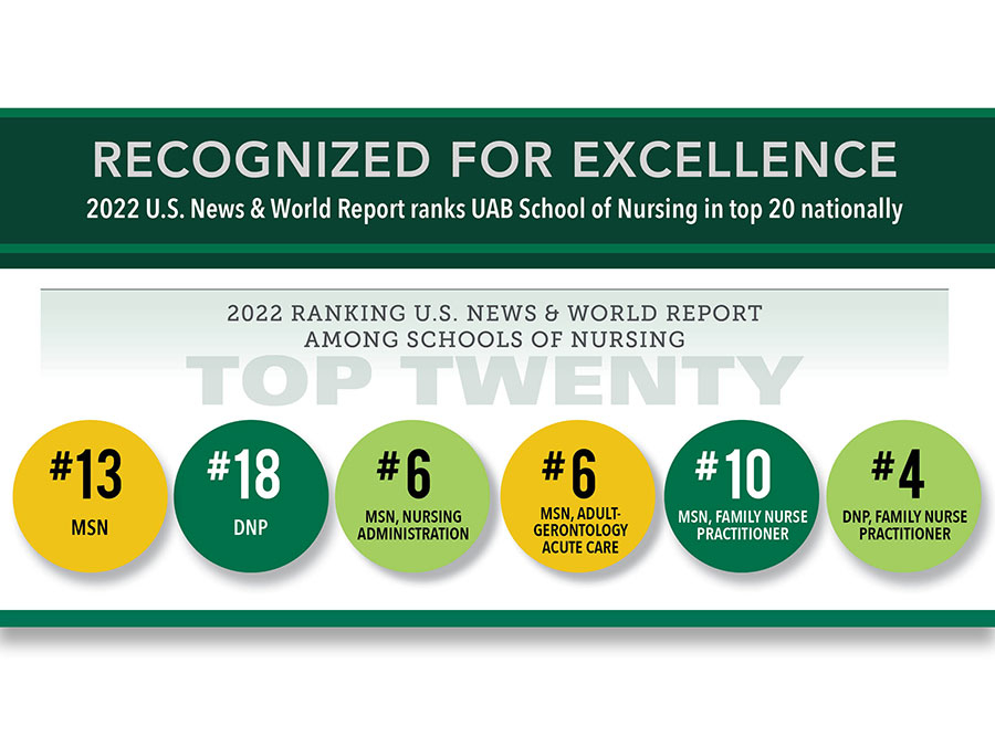 UAB School of Nursing graduate programs, specialties nationally ranked by U.S. News & World Report
