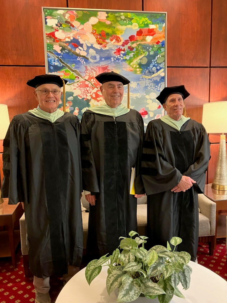The UAB School of Optometry’s first graduating class marked its 50th anniversary. Bernie Scott, OD, Michael Raim, OD, and Ron Dachelet, OD, members of the 1973 class, attended the 2023 Convocation and Hooding Ceremony to recognize this milestone.