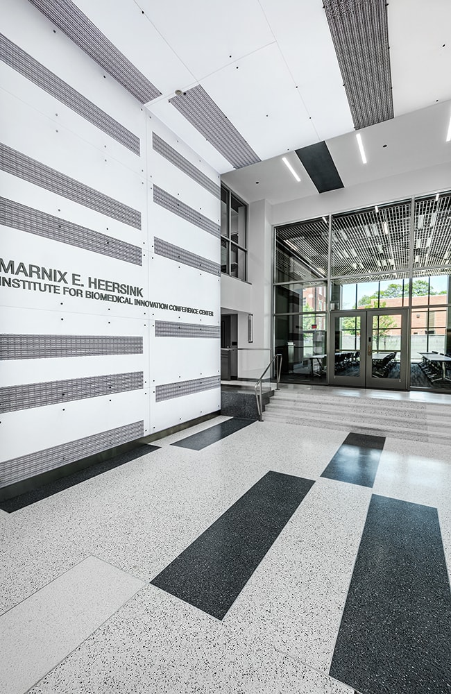 The lobby of the Marnix E. Heersink Conference Center. See more photos in the slideshow below.The Marnix E. Heersink Conference Center, located in the Altec/Styslinger Genomic Medicine and Data Sciences Building (see map), is now open for bookings from UAB and UAB Medicine units, as well as UAB affiliates.
