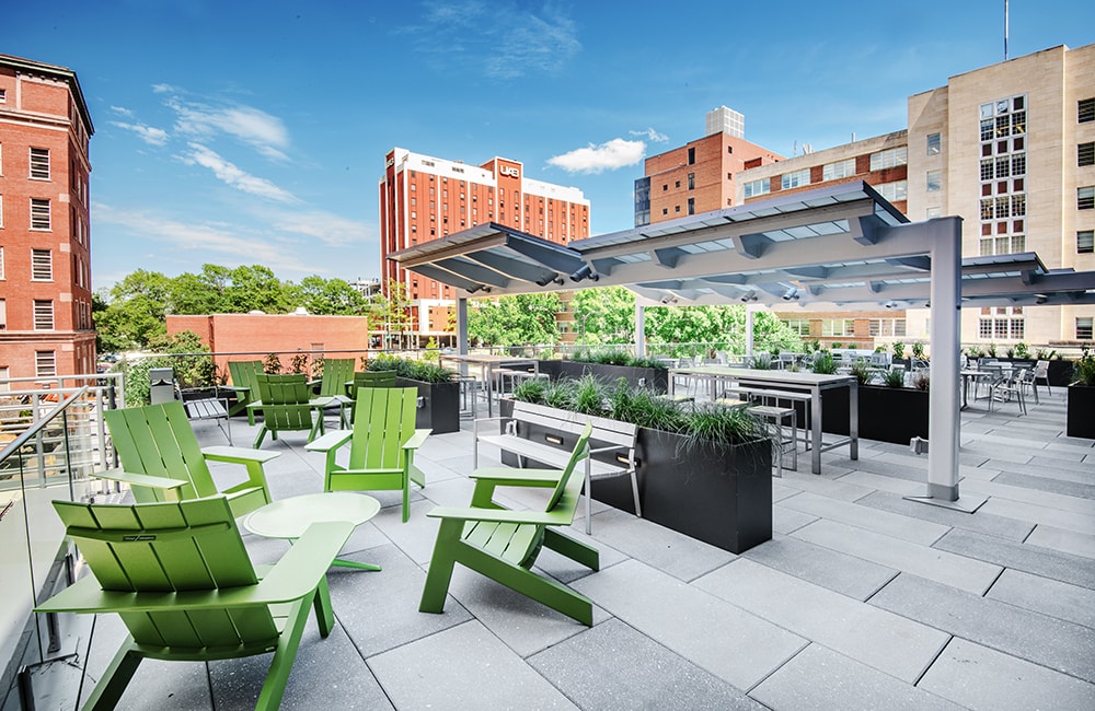 - The rooftop terrace includes 10 round tables and 40 seats, two high-top tables with 12 seats and small conversational seating. Rates are $25 for two hours, $50 for four hours and $100 for eight hours.