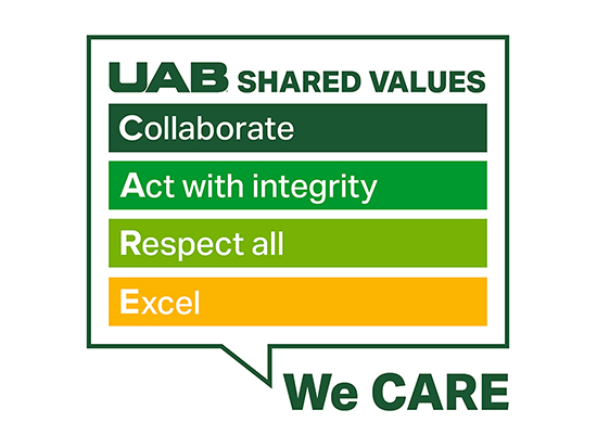 Beginning in February, UAB Human Resources Learning & Development will launch a program series that illustrates how the new UAB Shared Values: We CARE apply to the everyday work of the UAB community.