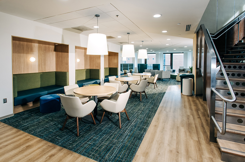 "The new spaces inside Volker Hall are truly exceptional. I wish I could hang out in this study area! I'm proud of this photo because it's lit with multiple strobes, but I don't think it's obvious that it's artificially lit. That's a tough feat to achieve sometimes, especially in a space with so many different facets."— Andrea Mabry, university photographer